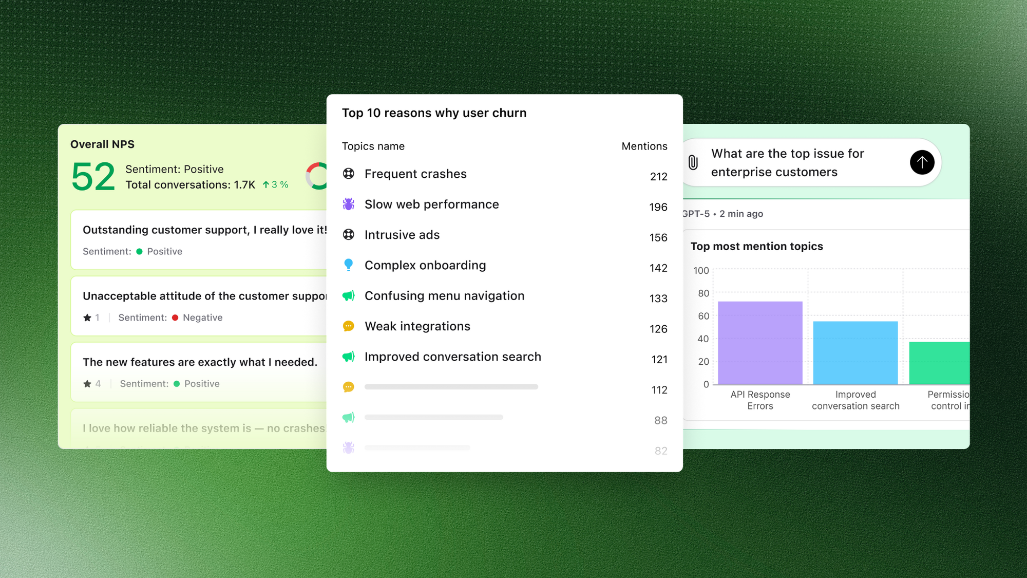 - AI Insight Engine: thay vì cập nhật thủ công, Compass tự động gom nhóm chủ đề, phát hiện xu hướng mới nổi, và chấm điểm ưu tiên dựa trên khối lượng, cảm xúc, phân khúc khách hàng và ARPU.